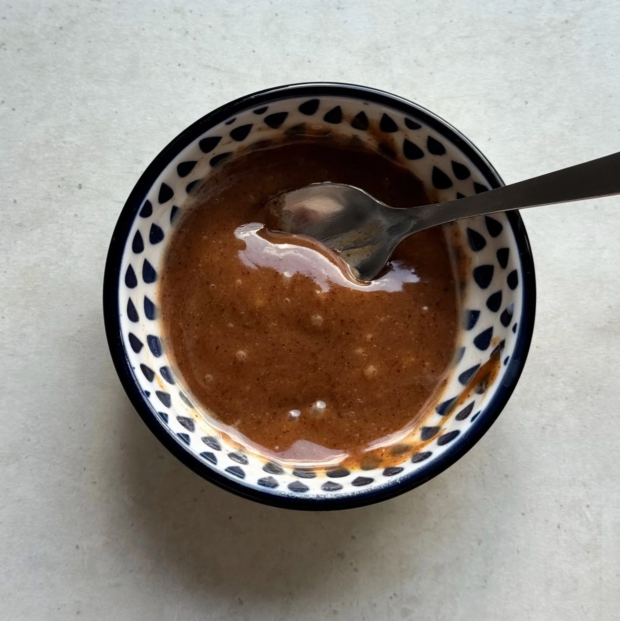 Initially, the sauce may be too thick for a drizzle-able consistency, add a splash of milk to loosen.